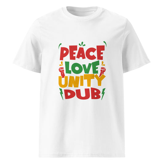 PEACE LOVE UNITY DUB - Black organic cotton t-shirt [More colours available]