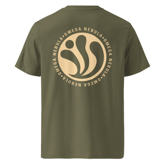 OMEGA NEBULA- Khaki Organic Cotton T-shirt [Front & Back print]